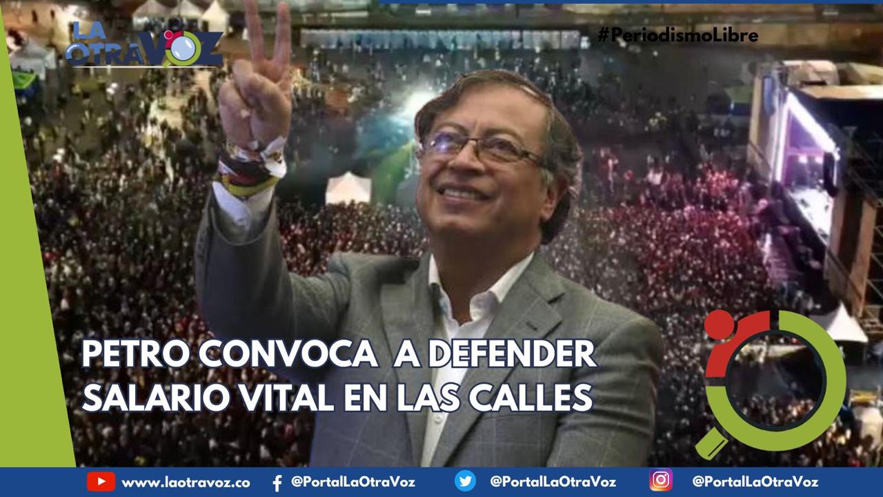 «El jueves los espero en todas las plazas públicas de Colombia» dijo Petro y agregó que «convoca el presidente para defender el salario vital (…) que se resuelve también por la fuerza del pueblo trabajador permanente».